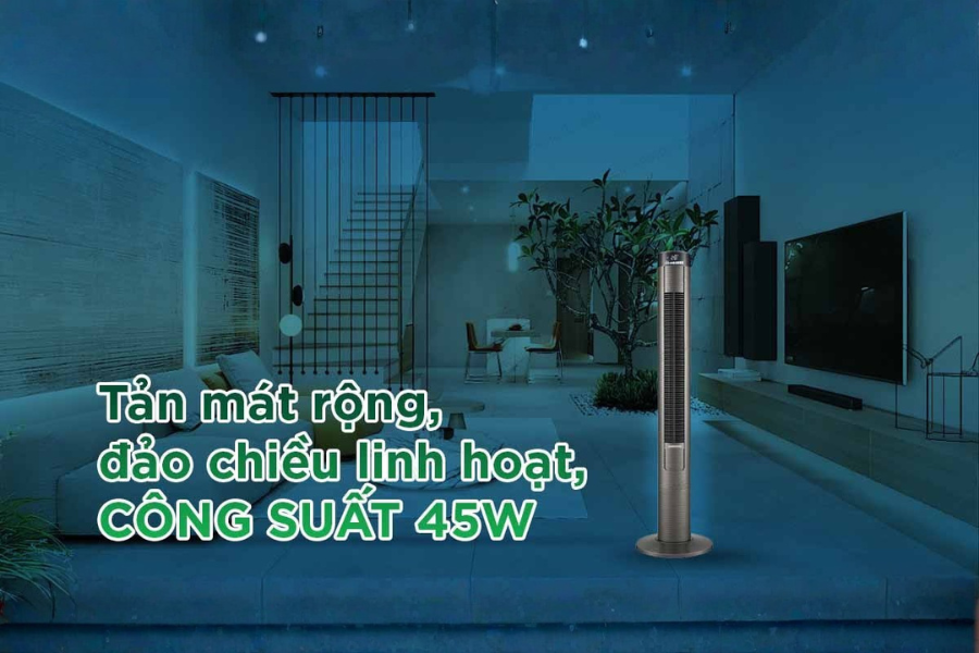 - Quạt tháp có công suất 45W làm mát hiệu quả, tiết kiệm điện năng