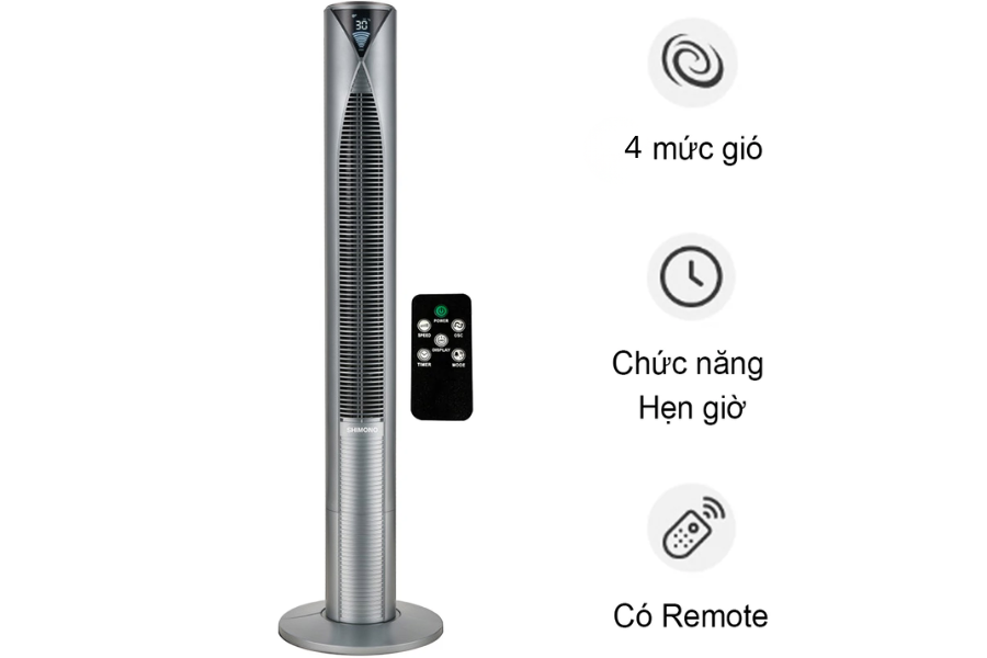 - Quạt tháp trang bị điều khiển từ xa bằng Remote cực kỳ tiện lợi