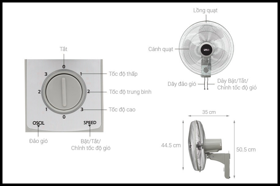 | Công suất – Mức gió | 55W – 3 mức gió |
