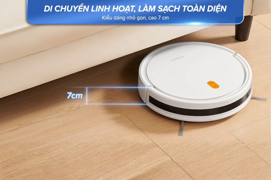 Bên cạnh đó, Robot hút bụi lau nhà Xiaomi Vacuum E5 Trắng EU còn nổi bật với thiết kế tối giản nhưng tinh tế, phù hợp với nhiều không gian nội thất. Màu trắng trang nhã giúp sản phẩm dễ dàng hòa hợp với phong cách nhà hiện đại. Thiết bị có kích thước nhỏ gọn, giúp di chuyển linh hoạt trong nhiều khu vực khác nhau. Đây cũng là yếu tố quan trọng giúp robot tiếp cận những vị trí khó làm sạch như gầm giường hay gầm bàn. Tổng thể, đây là một sản phẩm cân bằng tốt giữa hiệu năng, thiết kế và giá thành.