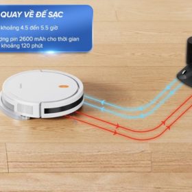 Một trong những điểm tiện lợi nhất của Robot hút bụi lau nhà Xiaomi Vacuum E5 Trắng EU là khả năng tự động quay về dock sạc khi pin yếu. Tính năng này giúp đảm bảo robot luôn sẵn sàng cho lần dọn dẹp tiếp theo mà không cần người dùng can thiệp.