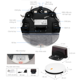 - Tự động lau dọn sạch nhà cửa, tiết kiệm thời gian, có chức năng lau nhà.