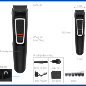 - Bộ 8 phụ kiện đa năng: cắt tóc, tỉa râu, ria mép, tạo kiểu.