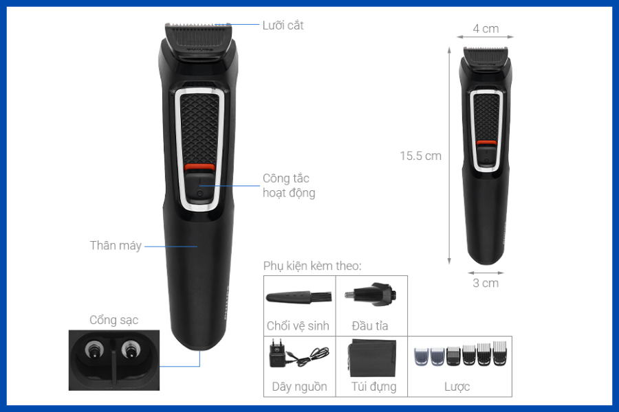 - Tông đơ Philips hỗ trợ cắt tỉa và tạo kiểu tóc/râu linh hoạt, đẹp mắt