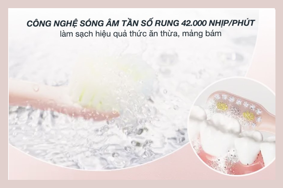 Nhờ cơ chế này, quá trình làm sạch diễn ra đồng đều hơn trên toàn bộ khoang miệng, hạn chế tình trạng bỏ sót mảng bám – nguyên nhân chính gây sâu răng, hôi miệng và viêm nướu nếu tích tụ lâu ngày.