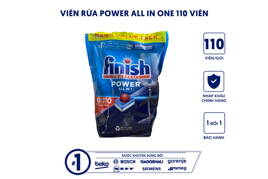 Một chiếc máy rửa chén hiện đại sẽ giúp công việc bếp núc nhẹ nhàng và nhanh gọn hơn, nhưng để máy hoạt động hiệu quả thì loại viên rửa bạn chọn đóng vai trò quan trọng không kém. Viên rửa chén Finish Power All in 1 110 viên không hương là một trong những sản phẩm hàng đầu được nhiều gia đình tin dùng nhờ khả năng làm sạch vượt trội, loại bỏ dầu mỡ cứng đầu, và không gây mùi hương quá nồng – phù hợp với người không thích hương liệu mạnh. Nếu bạn đang tìm một giải pháp rửa chén sạch sâu mà không cần can thiệp thủ công, đây là lựa chọn đáng cân nhắc. Bài viết dưới đây sẽ phân tích chi tiết các ưu điểm, cách dùng an toàn và lý do nên chọn viên rửa chén Finish này tại Điện máy Tín Phong để đảm bảo mua chính hãng và được hỗ trợ tốt nhất.